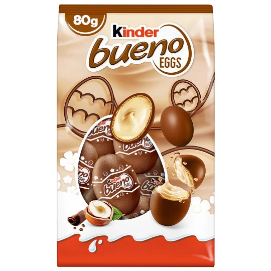 Schokoladeneier aus Vollmilchschokoladegefüllt mit feiner Milch-haselnusscreme (42%) und Waffel (5%).